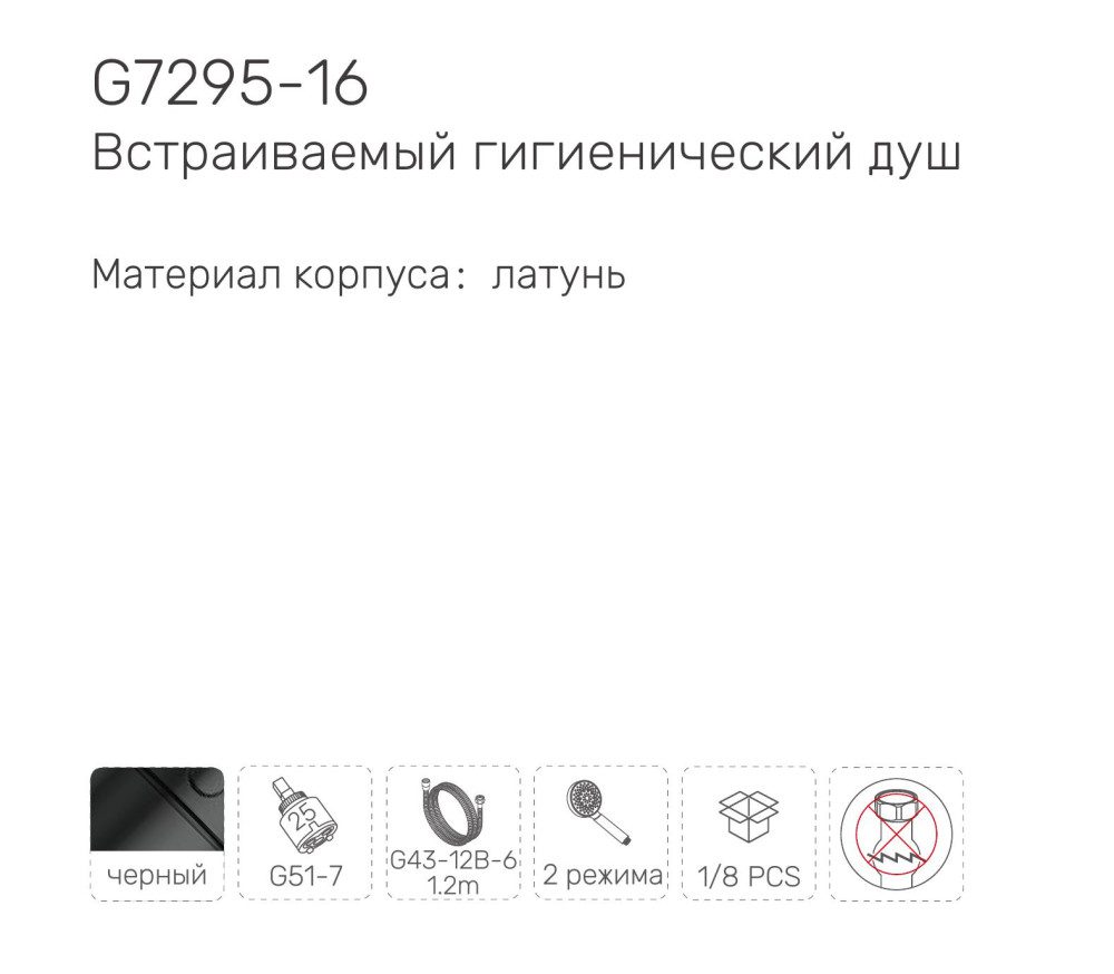 Смеситель скрытого монтажа для гигиенического душа Gappo G7295-16, чёрный