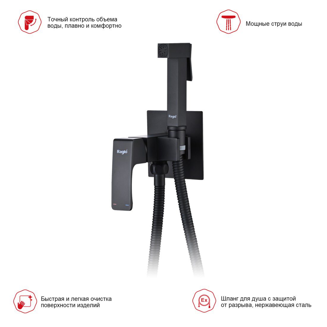 Смеситель скрытого монтажа для гигиенического душа Raglo R01.52.06, чёрный