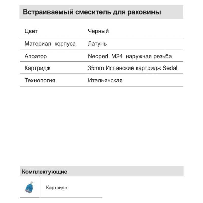 Смеситель скрытого монтажа для умывальника Faop A1009-36, чёрный