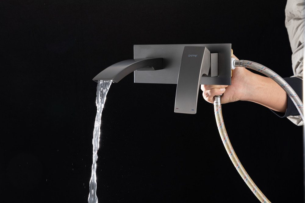 Смеситель скрытого монтажа для умывальника Gappo G1007-29, оружейная сталь