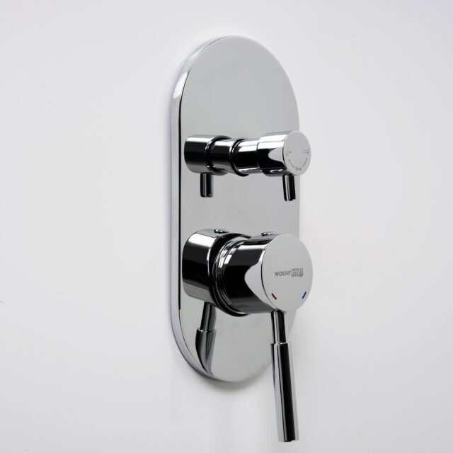 – Смеситель на 2 выхода. Подключается к двум аксессуарам для душа на выбор: верхней душевой насадке, лейке для душа и настенному изливу. В зависимости от ваших предпочтений.