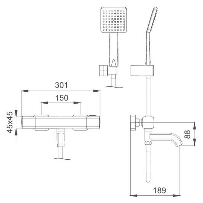 | Комплектация | Ключ для аэратора, Ключ шестигранный, Лейка для душа, Набор для монтажа, Настенный держатель для лейки, Смеситель, Шланг в металлической оплётке 1500 мм |