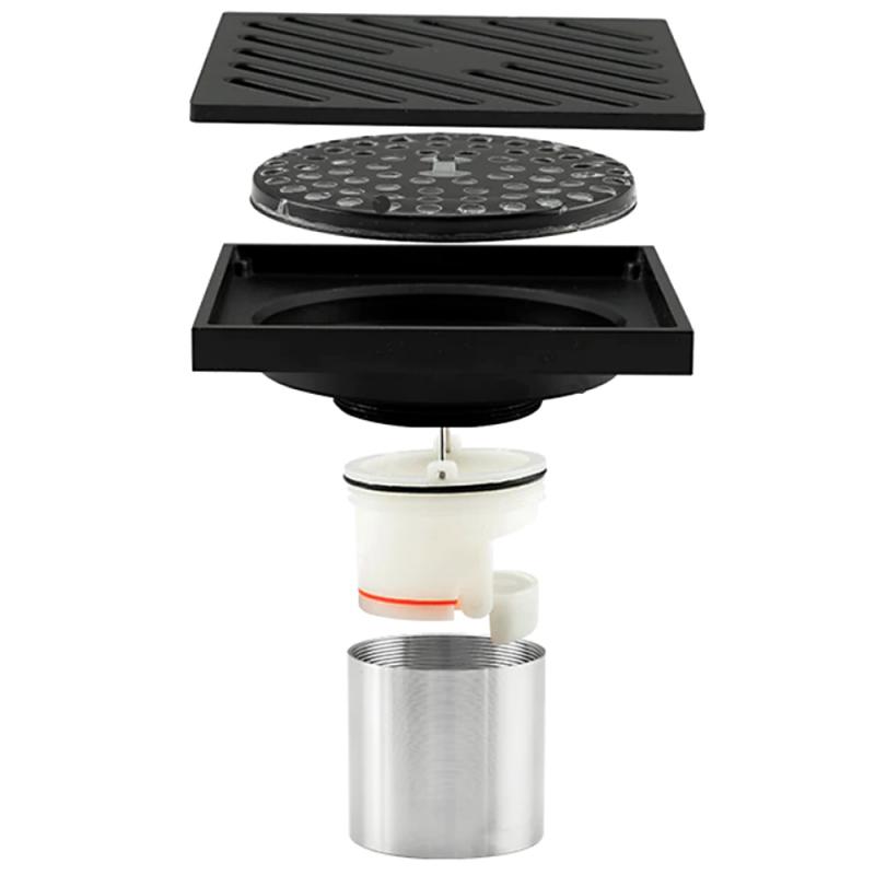 Трап для душа Gappo G81050-6 точечный, сухой затвор, 10x10 см, чёрный