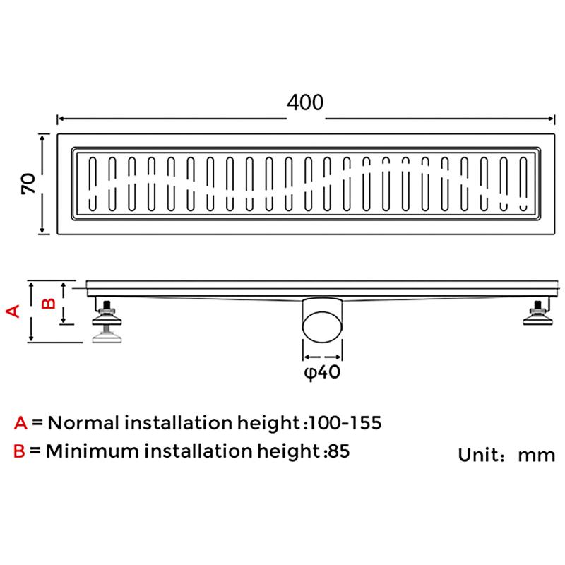 Трап для душа Gappo G84007-3 линейный, "решётка", 40 см
