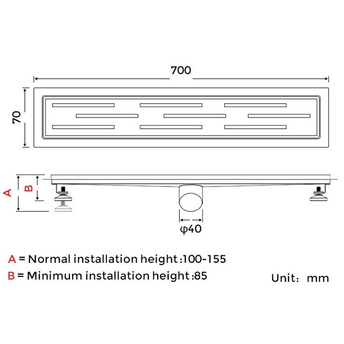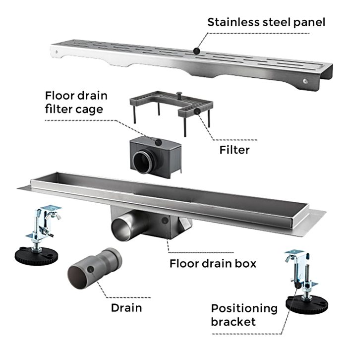 | Комплектация | Гидроизоляционная лента, Затвор, Монтажный крючок, Опоры, Решётка, Трап |