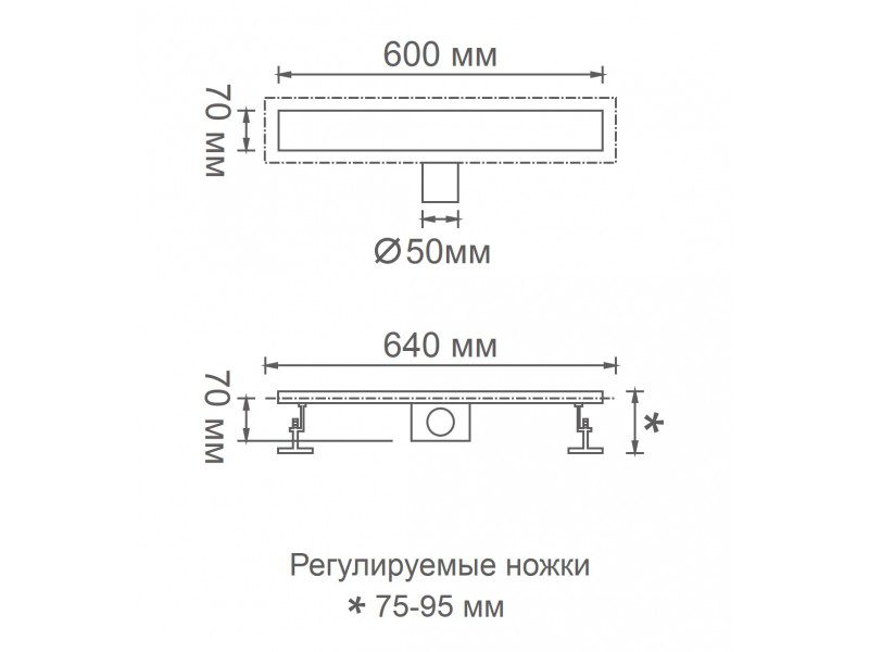 | Комплектация | Cифон, Водонепроницаемая мембрана, Водоотводящий желоб, Крюк для демонтажа, Регулируемые ножки, Решётка, Фильтр |