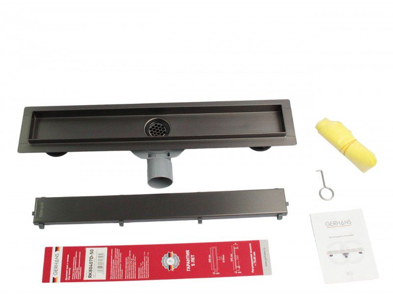 Трап для душа Gerhans K80407D-70 линейный, "под плитку", оружейная сталь, 70 см