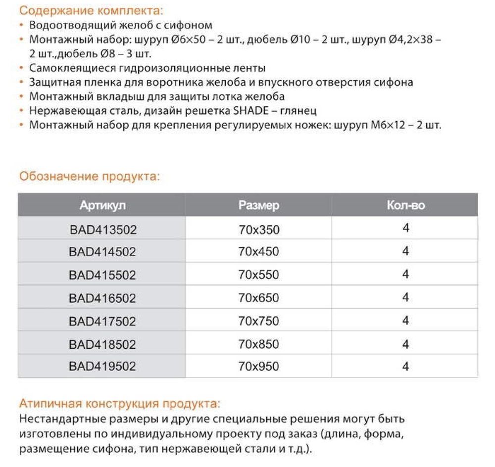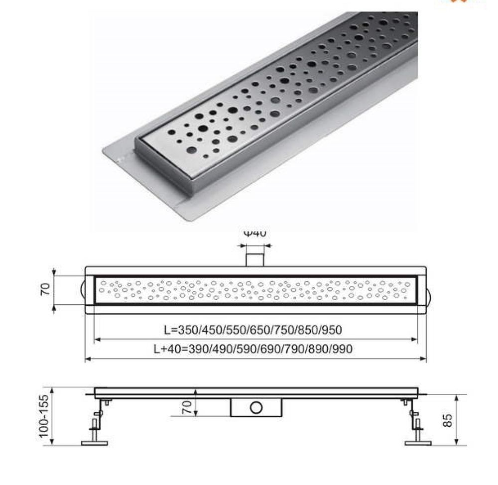 Трап для душа TIM BAD414502 линейный, “перфорация”, 70×450мм