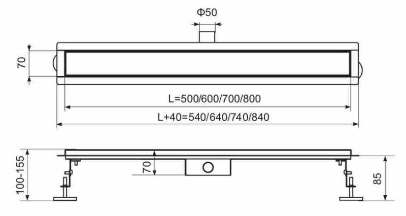Дренажный канал с решеткой под кладку плитки (Защита от запаха: сухой + гидрозатвор)