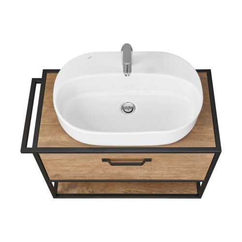 Тумба в ванную Aquaton Лофт Фабрик 80 под умывальник SANTEK Одри Round, дуб кантри