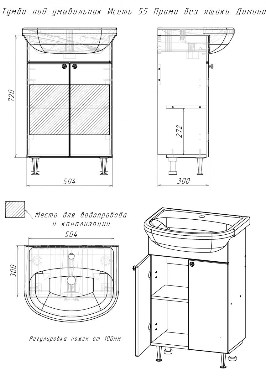 Тумба под умывальник “Исеть 55” Промо без ящика – это стильное и функциональное решение для вашей ванной комнаты. Современный дизайн и лаконичные формы тумбы подойдут для любого интерьера. Тумба изготовлена из высококачественных материалов: корпус выполнен из ЛДСП, а фасад – из МДФ с пленочным покрытием. Это обеспечивает долговечность и надежность изделия. Тумба оснащена доводчиками, что делает ее использование более удобным и безопасным. Регулировка ножек позволяет установить их на высоте до 30 мм, что обеспечивает устойчивость и удобство использования. Тумба не комплектуется раковиной, для использования с ней дополнительно приобретается умывальник “Исеть 55 Универсал”. Тумба под умывальник “Исеть 55” Промо без ящика – это стильное, функциональное и надежное решение для вашей ванной комнаты.