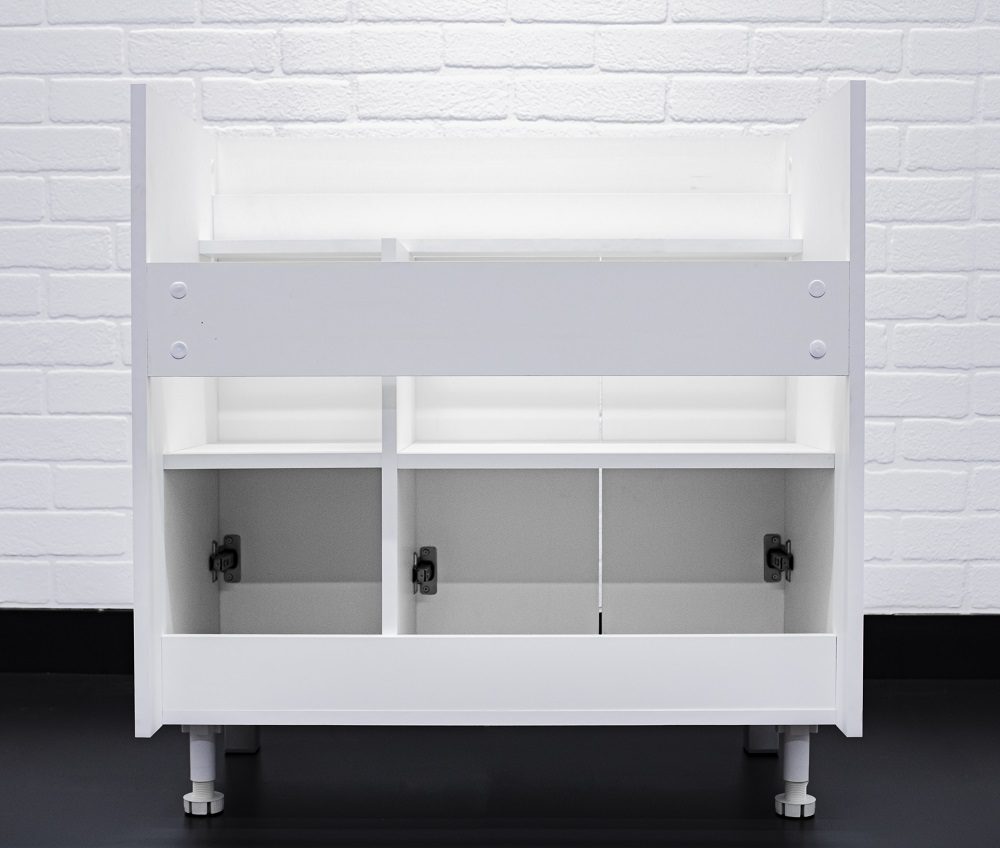 Удобство использования обеспечивается благодаря петлям с доводчиками на дверях. Они позволяют плавно закрывать двери и предотвращают случайное открывание. Ножки тумбы можно регулировать до 30 мм, что позволяет настроить высоту тумбы под ваш рост.