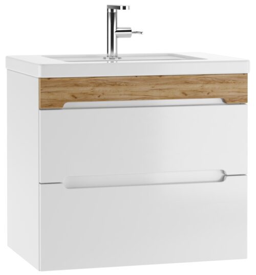 Тумба подвесная под умывальник “Maria 60” Maestro от бренда “Домино” – стильное и функциональное решение для вашей ванной комнаты. Тумба выполнена в классическом стиле и имеет элегантный белый цвет с дубовыми вставками. Корпус и фасад изготовлены из ЛДСП и МДФ, покрытых глянцевой эмалью, что обеспечивает долговечность и влагостойкость. Тумба состоит из двух ящиков с направляющими полного выдвижения, что обеспечивает удобное хранение вещей. Доводчики на ящиках обеспечивают плавное и мягкое закрывание. Тумба поставляется в собранном виде, что делает ее установку быстрой и легкой. Выбирая тумбу подвесную под умывальник “Maria 60” Maestro от “Домино”, вы получаете стильное и функциональное решение для вашей ванной комнаты, которое станет прекрасным дополнением к любому интерьеру и поможет создать уютную атмосферу в помещении.