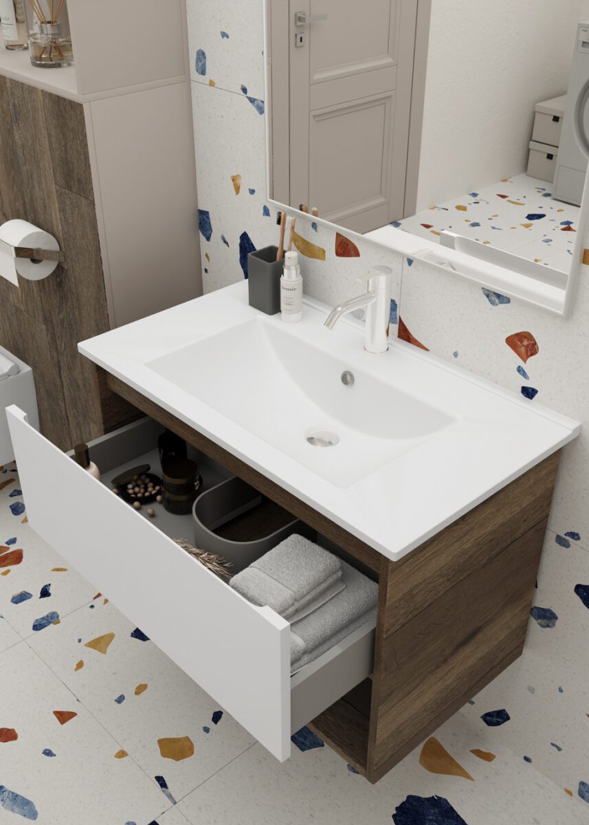Тумба в ванную LAPARET POLARIS 80 под умывальник Creavit Su 80, дуб Рока/белый