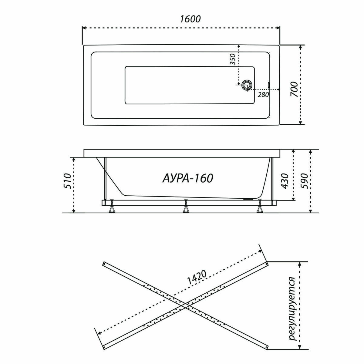 Ванна акриловая Тритон Аура 160, Щ0000050545