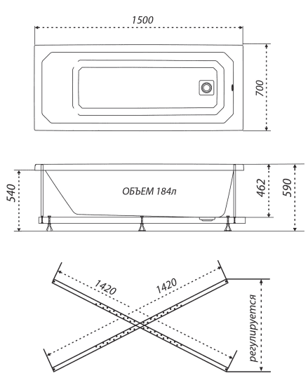 Ванна акриловая Тритон Прага 150, Щ0000049117
