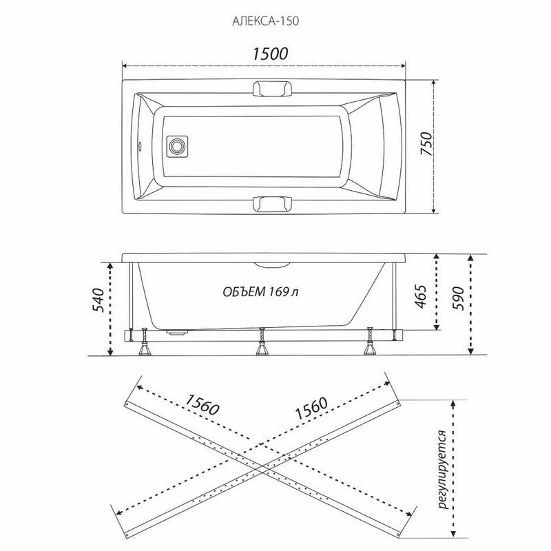Ванна гидромассажная Тритон Алекса 150 NEW, Люкс, Flat металл.(+гидро+спина+кран переключатель+аэромассаж)