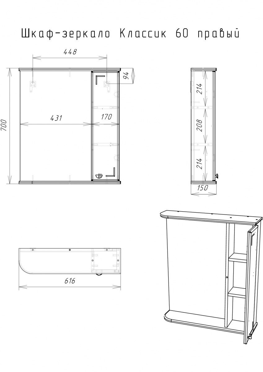Зеркало-шкаф Классик 60 правый Айсберг поставляется в собранном виде, что значительно упрощает процесс установки и экономит ваше время.